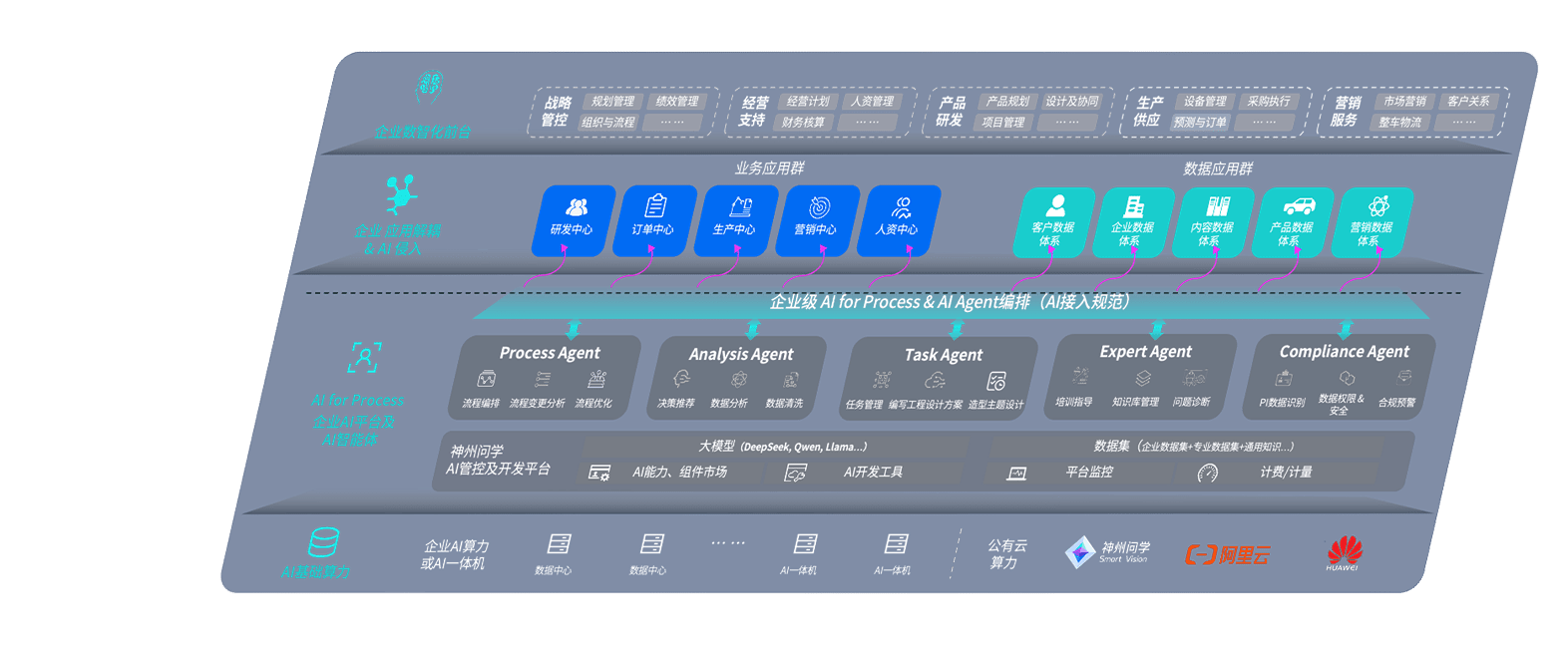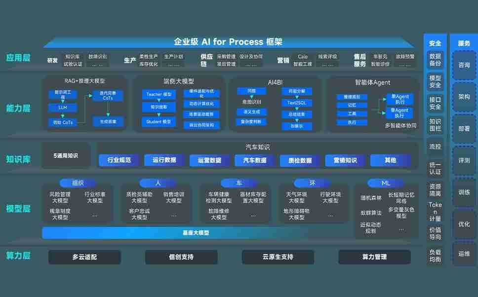 端到端的一站式AI工作空间深度融合了从企业战略规划到日常经营的全流程业务板块,,,定向解决车企内部领域多、、部门多、、、链条长、、、、场景碎片化等难题,,支持车企快速构建以AI为核心的生产力写作体系,,,实现任务执行与AI能力的无缝集成与交互